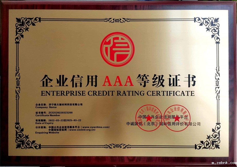 企业信用AAA等级证书